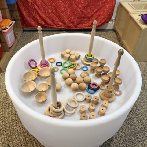 At sleep time, we have roll out mattresses for each child that are placed on the floor in the designated sleep area. Children have individual labelled sheets that are laundered after each use.